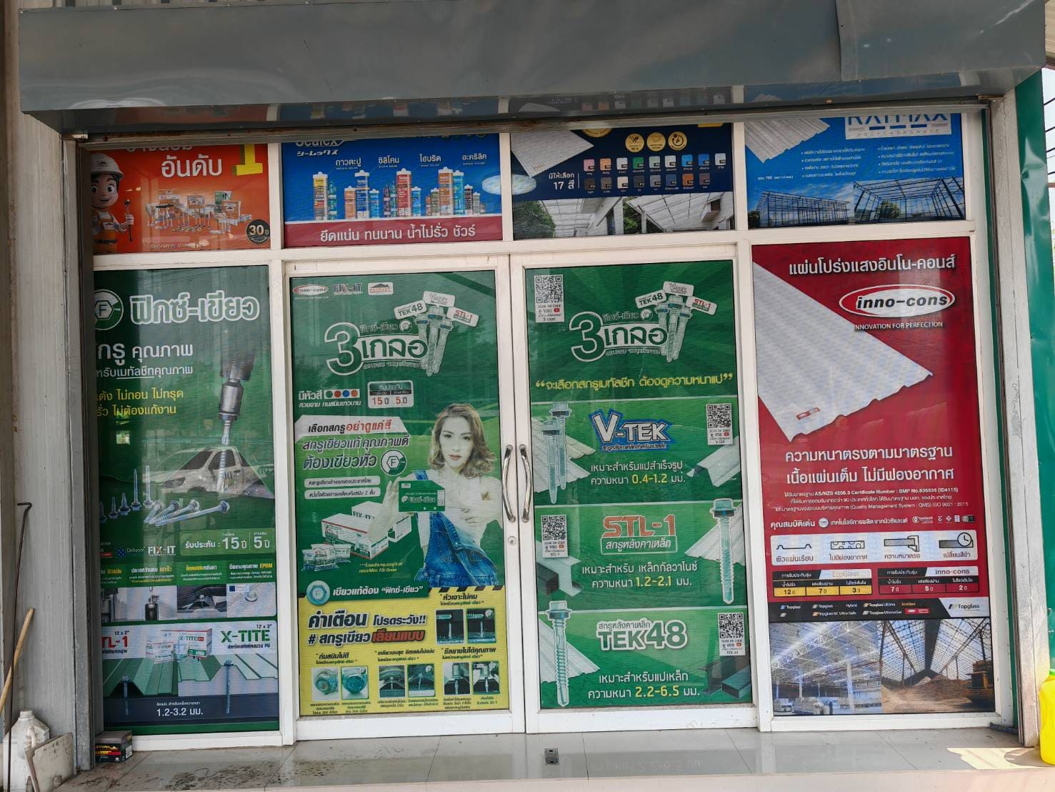 ที่มีทั้งป้ายหน้าร้าน ป้ายข้อความ ป้ายโฆษณา และอื่น ๆ เมื่อนำมาติดผนังกระจก ก็สามารถกระตุ้นความอยากรู้ของลูกค้า ทำให้ลูกค้านึกอยากมาลองซื้อสินค้าและบริการภายในร้าน